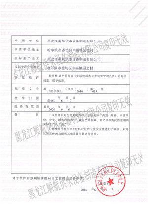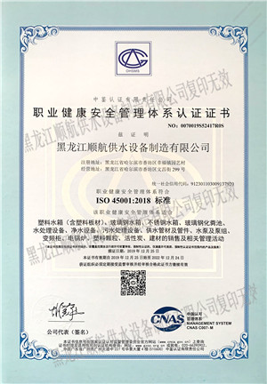 企业自成立以来,本着“造有质量的产品,做有品位的企业”的经营理念,严格把控产品质量关口,我们用专业的团队和先进的设备竭诚为新老客户提供优质的产品和服务!所生产产品均通过国家检测部门检验合格,取得国家卫生部涉水安全产品卫生许可批件、ISO9001:2015国际标准质量管理体系认证、ISO14001:2015国际标准环境管理体系认证、ISO45001:2018国际标准职业健康安全管理体系认证等,确保客户可以放心使用。多年来所销售及安装的产品赢得了客户对我们的青睐和认可。