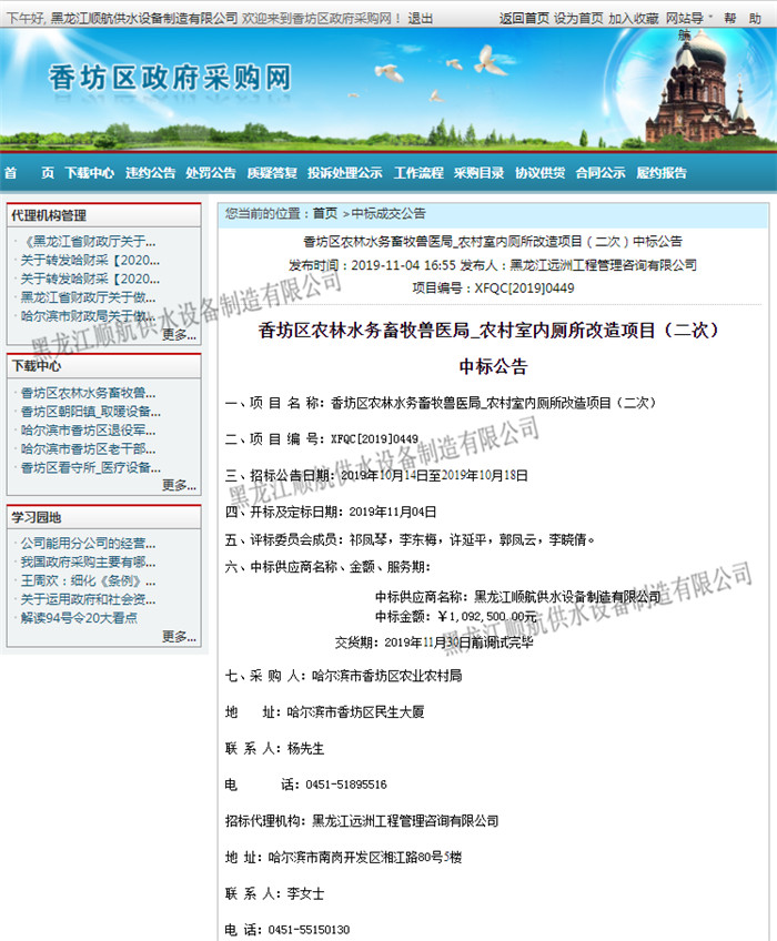 香坊区农林水务畜牧兽医局_农村室内厕所改造项目(二次) 已全部完成合同工作内容并经验收交付使用 |